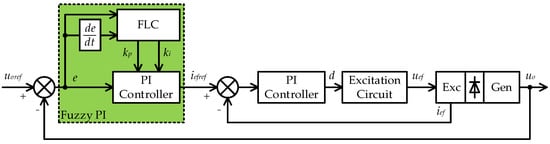 22], a fuzzy PI controller was applied and the simulation results showed that the fuzzy PI controller had a better dynamic performance than a traditional voltage control method under different speed and load conditions.