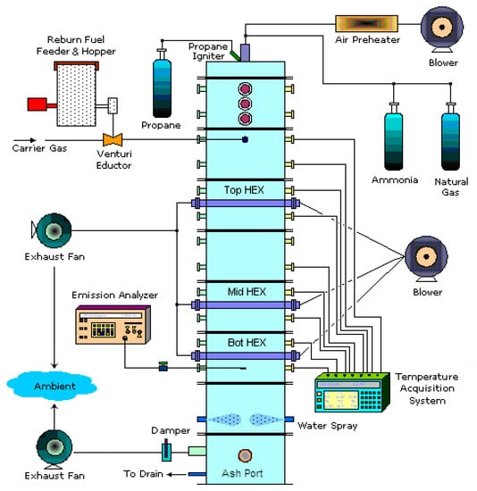 - Adams, B.R.; Harding, N.S. Reburning using Biomass for NOx Control. Fuel Process. Technol. 1998, 54, 249–263. [Google Scholar] [CrossRef]