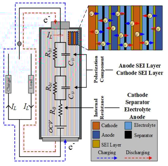 - Wehbe, J.; Karami, N. Battery equivalent circuits and brief summary of components value determination of lithium ion: A review. In Proceedings of the 2015 Third International Conference on Technological Advances in Electrical, Electronics and Computer Engineering (TAEECE), Beirut, Lebanon, 29 April–1 May 2015; pp. 45–49. [Google Scholar]