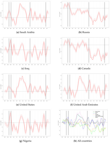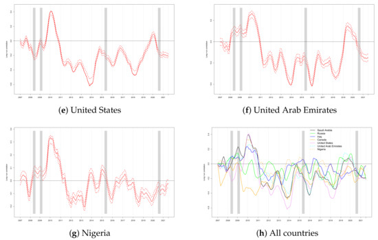 - Kilian, L.; Rebucci, A.; Spatafora, N. Oil shocks and external balances. J. Int. Econ. 2009, 77, 181–194. [Google Scholar] [CrossRef] [Green Version]