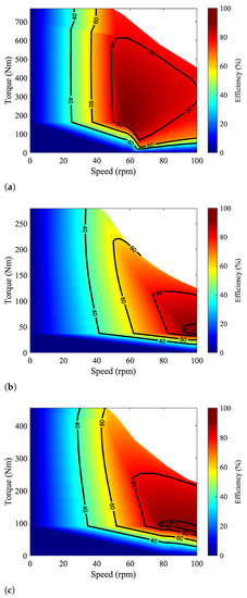 By considering these losses, the efficiency of all motors is also computed, as shown in Figure 12.