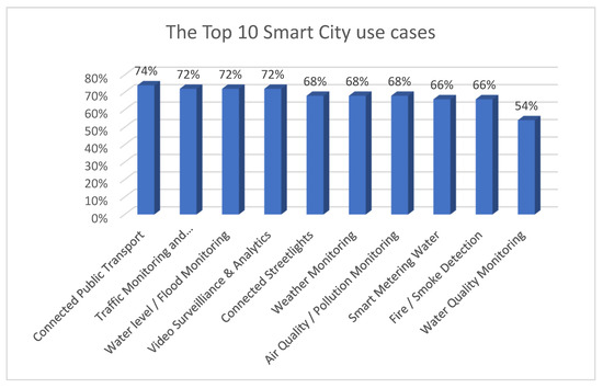 Top 10 Smart City use cases (Source: https://iot-analytics.com/top-10-smart-cityuse-cases-prioritized-now) (accessed on 20 November 2021).