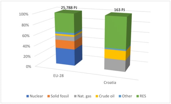 Production of primary energy in Croatia and EU in 2019. Source: Authors’ elaboration based on [].