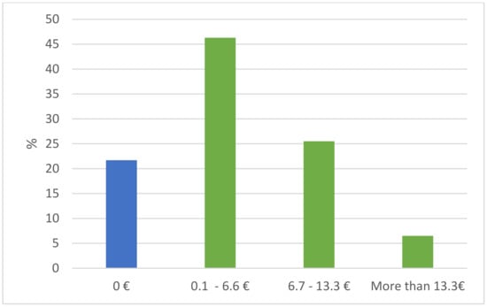 Willingness to pay for renewable energy technology in household per month. Note: amounts are recalculated from HRK to EUR according to Croatian National Bank exchange rate for 2020: 1 EUR = 7.53308 HRK. Source: Authors’ research.