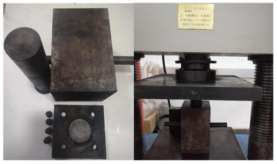 Due to its low strength and weak cohesion, tectonic coal is difficult to obtain in the form of an intact core specimen. Therefore, reconstituted coal specimens have been widely used in order to investigate the mechanical and permeability properties of tectonic coal. The main process for preparing these specimens is as follows: as shown in Figure 1, the mixed particle size pulverised coal was prepared, 10% water (mass percentage) was added, and petroleum jelly was applied to the inner wall of the mould in order to reduce the friction force. Following this, the pulverised coal was put into a steel mould and pressed at 15 MPa for 2 h in order to make a cylindrical sample with a diameter of 50 mm and a height of 100 mm, as seen in Figure 2 and Figure 3. Formed pressure was provided by an electric–hydraulic serving compression machine. Subsequently, the samples were put in an oven and the weight of each sample was measured every 12 h until the change in weight was less than 0.2% of the initial weight. This process lasted approximately 96 h. Uniaxial compressive strength that was measured at 0.37 MPa, tensile strength that was measured at 0.07 MPa, and an internal friction angle of 29.2° proved that the samples had the characteristics of low strength and weak cohesion.