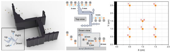 Figure 6 shows the location of the temperature sensor installed depending on the type of heating module to measure the solution temperature over time. 9 K-Type thermocouples with a diameter of 0.5 mm were used as the temperature sensors.