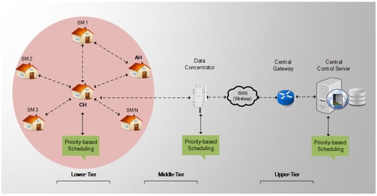 Proposed three-tier hierarchical architecture for AMI applications.