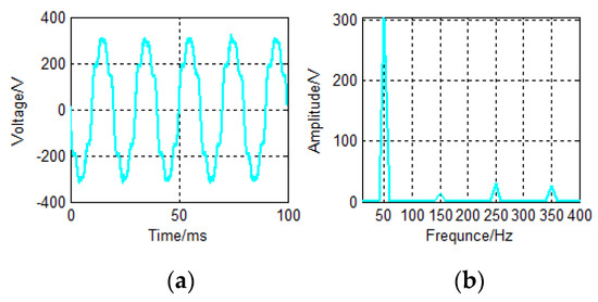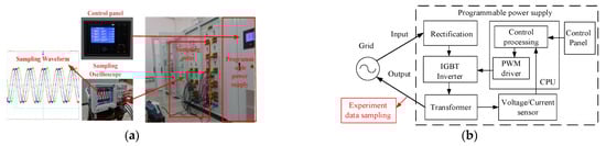 The AC signal is grid voltage as an experimental example. Experiment platform is shown in Figure 9. The experiment of superimposing harmonics in fundamental voltage is carried out through a programmable power supply device. The AC voltage signals are sampled and the sampling cycles are selected by the oscilloscope of Tektronix GDS−2102.