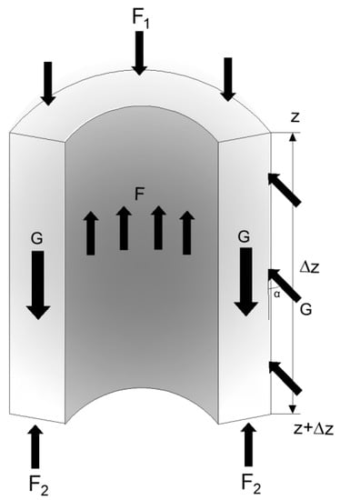 For the cement slurry cell, to meet the force balance, the axial and vertical forces of the cement slurry on the wellbore satisfied the following equation: