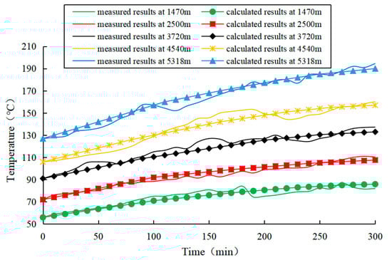 Comparison between the calculated temperature and the measured results.