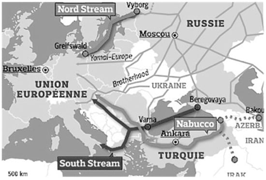 - Available online: http://www.fruits-rouges.org/wp-content/uploads/Les-gazoducs-North-Stream-South-Stream-et-Nabucco1.jpg (accessed on 25 August 2021).
