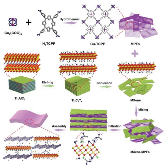 - Zhao, W.; Peng, J.; Wang, W.; Jin, B.; Chen, T.; Liu, S.; Zhao, Q.; Huang, W. Interlayer hydrogen-bonded metal porphyrin frameworks/MXene hybrid film with high capacitance for flexible all-solid-state supercapacitors. Small 2019, 15, 1901351. [Google Scholar] [CrossRef]