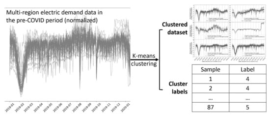 Future work directions are suggested as follows. Firstly, clustering methods other than K-means can be tested to study the optimal method for electricity consumption data clustering. Secondly, the same clustering method should be applied to other electricity consumption datasets to validate the method’s generality. Finally, multi-parameter analysis needs to be performed to consider a wide range of external parameters, such as weather conditions, economic structures, economic indexes, mobility, etc. The findings can answer why the electricity consumption pattern changed and predict how long the impact would last.