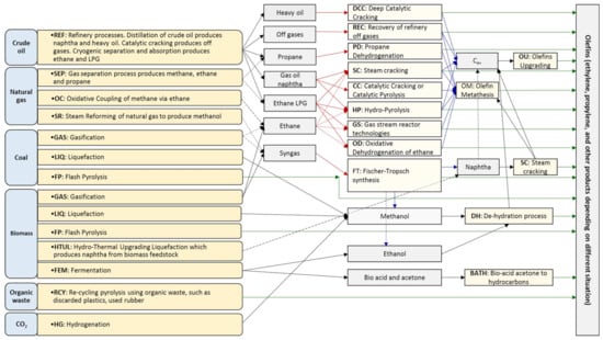 Different technologies for olefin production, reproduced from [].