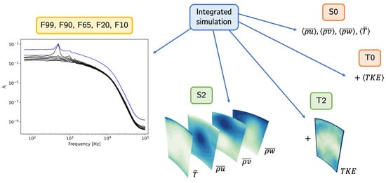 - Case S0: the inlet boundary condition is imposed by specifying 0D quantities in space and time, i.e., by imposing the three components of momentum , , and and the static temperature (spatially and temporally averaged values of the integrated simulation).