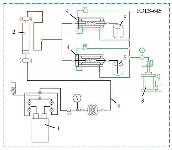- The saturated core sample was placed into the core holder of the FDES-645 filtration unit, where pressures were created simulating reservoir conditions [33].