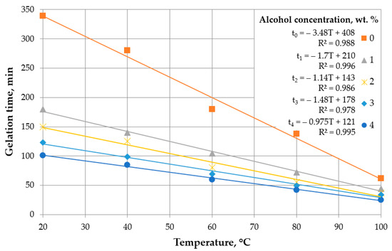 - Gelation time—for successful water shut-off operations, the gel must gain strength over a sufficient period to allow for its injection into the reservoir, but not more than 24 h (average down time after the completion of work before the use of the well);