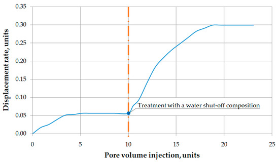 - After the shut-off composition was injected into the sample core, the temperature was increased to the average reservoir temperature (37 °C) and the system was maintained in a resting state. The holding time of the system at constant thermobaric conditions averaged 24 h.