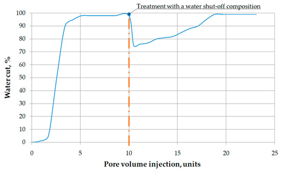 - The ability of the water shut-off composition to reduce the filtration characteristics of water-saturated and highly permeable reservoir systems in order to increase the oil displacement rate.