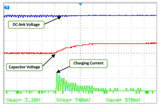 Figure 16 shows the results obtained of charging from the dc-link of the VSD. The charging circuit was configured to switch off once the dc-link voltage had dropped below a pre-set value. This was done to ensure that the dc-link was not excessively loaded by charging of the additional capacitor.