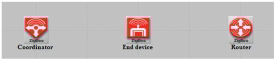 The research carried out here was based on ZigBee technology based on IEEE 802.15.4 specification. ZigBee is a wireless ad-hoc network with low power consumption, low data rate (250 kbps), and short-range. For this reason, it is well suited for use in wireless sensor networks and more broadly in the Internet of Things. A ZigBee device can be divided into three categories: coordinator, router, and terminal device. ZigBee device symbols in the Riverbed Modeler simulator are demonstrated in