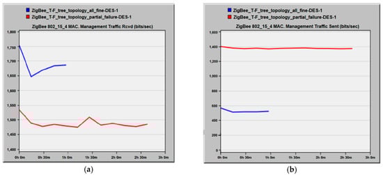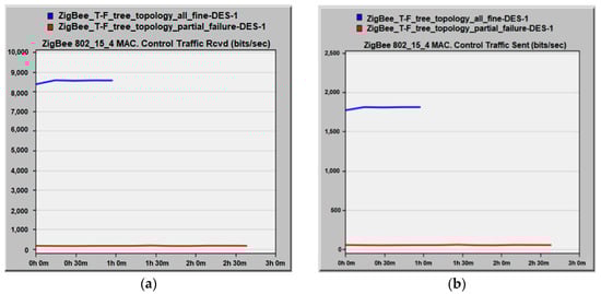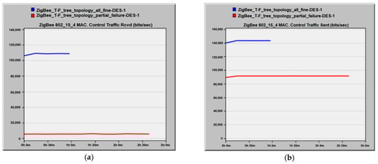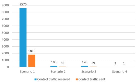 Figure 10. The value of control traffic decreased from 8570 b/s to 2 b/s for received traffic, and 1810 b/s, to 1 b/s for sent control traffic in scenario 4.