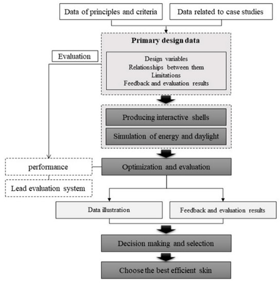 Nowadays, there are many highly glazed facades, which provide daylight and pleasant external views. At the same time, the risks of having high thermal loads should be considered in the design stage by using shading devices and controlling shading patterns in facades with large windows or transparent elements [23,24]. Several designs for building façades have been developed to provide comfortable conditions for occupants [1]. A comprehensive and multi-objective framework for designing shading devices has been suggested by scholars, in which there are two main steps: (1) the search of non-dominant solutions and (2) multi-criteria decision making (MCDM) [25]. Accordingly, the optimization of shading devices design in buildings normally involves making a balance of the following objectives: maximizing energy efficiency through daylight and improving the occupants’ visual comfort.