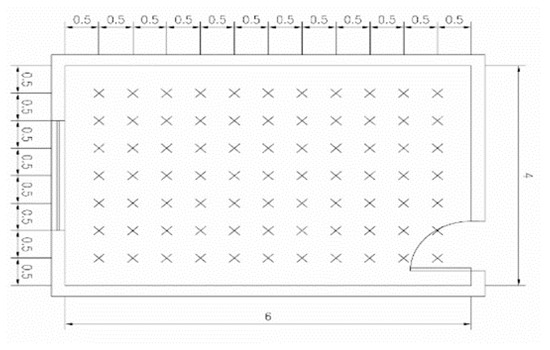Daylight Sensors: the sensors predicted for this room are located 0.5 m away from each other at the height of 80 cm (Figure 7).
