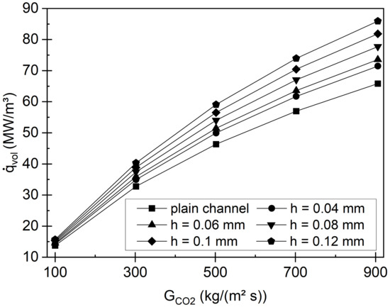 where A is the heat transfer surface area and is the enveloped volume of the heat exchanger. The heat flow divided by the volume of the heat exchanger was defined by the volumetric heat transfer density in the present study: