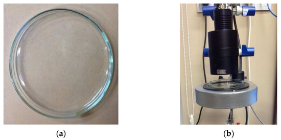 Vis-NIR absorbance spectra were obtained by transmission method using two fiber optic probes of the Tec5 AgroSpec spectrophotometer system, equipped with two detectors: MMS1 NIR enh. and PGS 2.2tc, both of which are from Carl Zeiss (Oberkochen, Germany). The RP-7 probe was used as a light source, which was located 25 mm above the sample in the optical axis of the receiving probe. The RP-7 probe generated a light beam that was to pass through the tested sample placed in a Petri dish made of borosilicate glass (see Figure 1). The A40 probe was 50 mm below the Petri dish with the sample and collected light transmitted through the sample. The Tec5 MultiSpec Pro 3.6 software was used to record the spectra. Absorbance spectra were recorded in the wavelength range 305–2210 nm with an interpolated resolution of 5 nm.