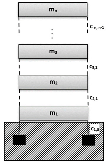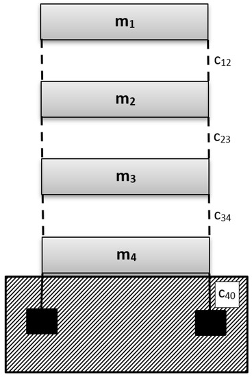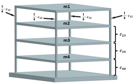 The analyzed model is a four-story wall frame shown in Figure 2, the dynamic parameters of which have been taken from work [33]. Parameters of the inertial and elastic elements of the tested system are as follows: , , , , , and .