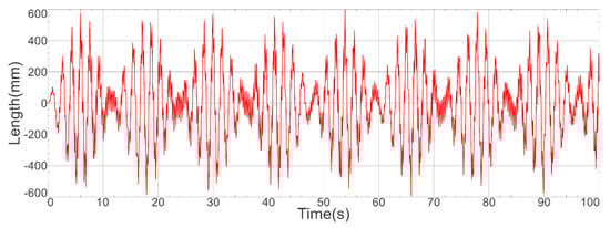 where: A—vibration amplitude (in the analysis A = 50 mm was assumed), —first vibration frequency (in the analysis —3.4096 rad/s was assumed), —second vibration frequency (in the analysis = 21.1928 rad/s was assumed).