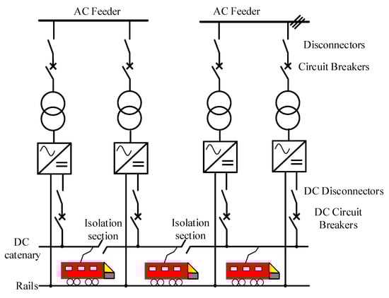 The substation control system controls the reactive power on the AC side as well as the active power and DC voltage. In areas where the lines are close to each other, rectifying stations could be removed and replaced with DC–DC links [46]. Further to this, modern MVDC rail might be reversible and integrate BESS [57].