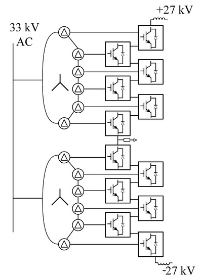 | Voltage levels | 600 V–3 kV (trams, suburb trains) Long distance 9 to 10.5 kV [7,8] High speed DC 20–30 kV [46] | 5–50 kV [26,91,94,95] ±10 kV [5,89,90,92,96] 1.5–100 kV [78,97,98] ±10 kV to ±70 kV [99] | Typically ±25 to ±50 kV [75] | 5 kV main bus voltage [13] 1–35 kV [86] 10 kV [10,34] |