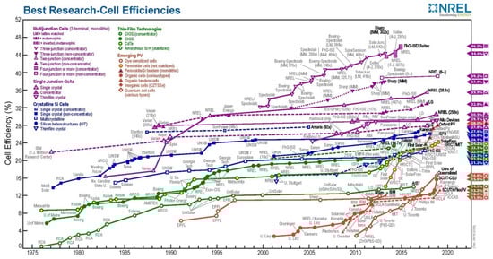 PV efficiency research developments of various types from 1975 to 2020 [].