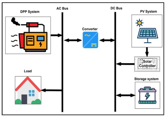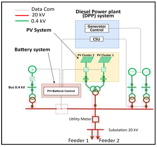 Karimunjawa to try to reduce the cost of production. In line with the central government’s plan, that the addition of this renewable energy plant has started running a renewable energy program with a target of 23% by 2025 []. Therefore, a low-cost hybrid-based Intermittent generator reduces the cost of producing electric power []. DPP hybrid power plants with Photovoltaic (PV) systems were believed to reduce production costs [].