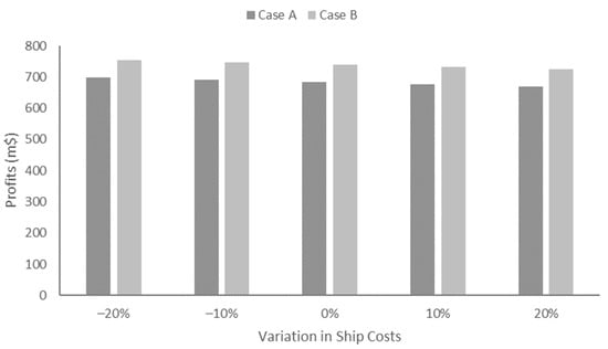 4.2.1. Sensitivity Analysis for Costs of Ship