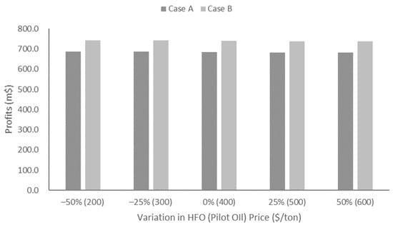 4.2.4. Sensitivity Analysis for Price of HFO (Pilot Oil)