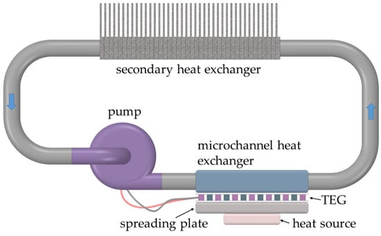 Self-cooling system with microchannel heat exchanger cooled TEG (Redrawn based on the figure provided in [79]).