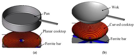 Heating metal of different shapes and sizes: (a) planar cooktop and (b) curved cooktop.
