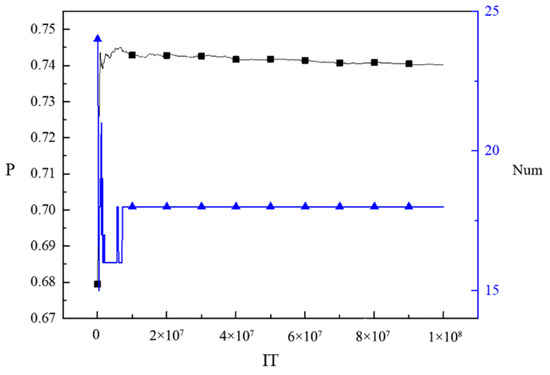 Figure 2 shows the relationship between the evolution probability and the number of heat units. As shown in Figure 2, in the early stages of evolution, the number of heat exchangers fluctuates significantly, and the probability of the selected streams varies. In the later stages of evolution, the number of heat exchangers is basically constant. At this time, the probability that each stream is not selected is fixed at about 0.74. For instance, in the case study considering 13 hot and 7 cold streams, in the later stages of evolution, approximately only three streams out of the 13 hot streams can be selected for evolution, while the remaining streams do not participate in the current iteration. Therefore, this iteration has no significance for a stream that has no heat exchanger selected for the current evolution. This approach requires a large number of iterations to ensure that each stream evolves once, which reduces the evolutionary efficiency. In view of this limitation, this study adopts a participatory evolutionary strategy for streams based on hot streams. The proposed strategy takes adequate measures to ensure that at least one heat exchanger on each stream is selected to participate in the evolution in a certain period. The proposed strategy ensures that each stream has a sufficiently high opportunity to participate in the evolution and improves the evolutionary efficiency of the algorithm.