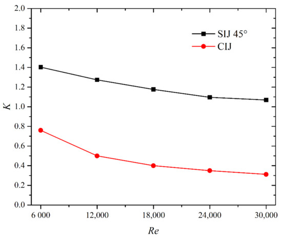 - The pressure loss coefficient of SIJ 45° and the CIJ are studied.