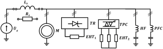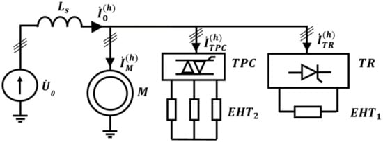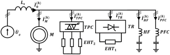 The uses of nonlinear loads are rapidly increased at the different types of industrial enterprises. For example, renewable energy sources must be provided with semiconductor devices [1,2] and the mining industry uses a lot of nonlinear loads [3]. For instance, frequency converters and rectifiers cause production with high energy efficiency. This could be due to the new structure of the rectifier [4], new electromechanical transmission [5], new harmonic compensating device, or a method to implement it that allows a reduction of active power losses in the distribution network [6,7]. Additionally, semiconductor devices can become a basis for some low-power supply systems [8].