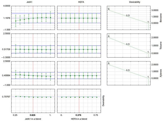 Desirability function determining the effect of BTX compounds on the fuel blend contents.