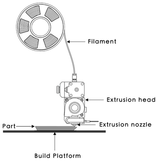 The schematic shows material extrusion (ME) process. Reprinted with permission from Ref [49]. Copyright 2020 by the authors and licensee MDPI, Basel, Switzerland.