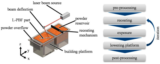 Schematic of the laser powder bed fusion process. Reprinted with permission from Ref. [60]. Copyright 2019 by the authors and licensee MDPI, Basel, Switzerland.
