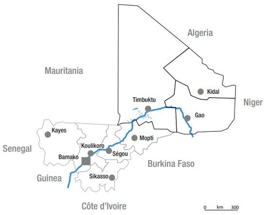 22. CSAO/OCDE. Malian Regions of Gao, Kidal and Timbuktu. National and Regional Perspectives. 2015. Available online: https://www.oecd.org/fr/csao/publications/Les-regions-maliennes-de-Gao-Kidal-et-Tombouctou.pdf (accessed on 5 October 2021).
