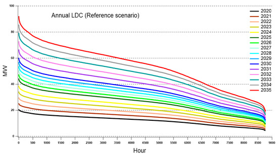 Figure A1. Annual load curve, seasonal load duration curve and daily load curve (Reference scenario).