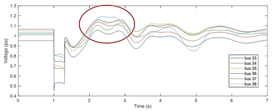 Voltage profiles of various buses during a 3-phase fault at bus 2.