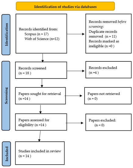 Despite its narrative character, the review protocol was guided by the PRISMA 2020 checklist [19]—see Figure 1.